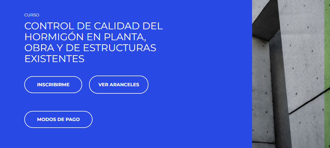 CURSO CONTROL DE CALIDAD DEL HORMIGÓN EN PLANTA, OBRA Y DE ESTRUCTURAS EXISTENTES
