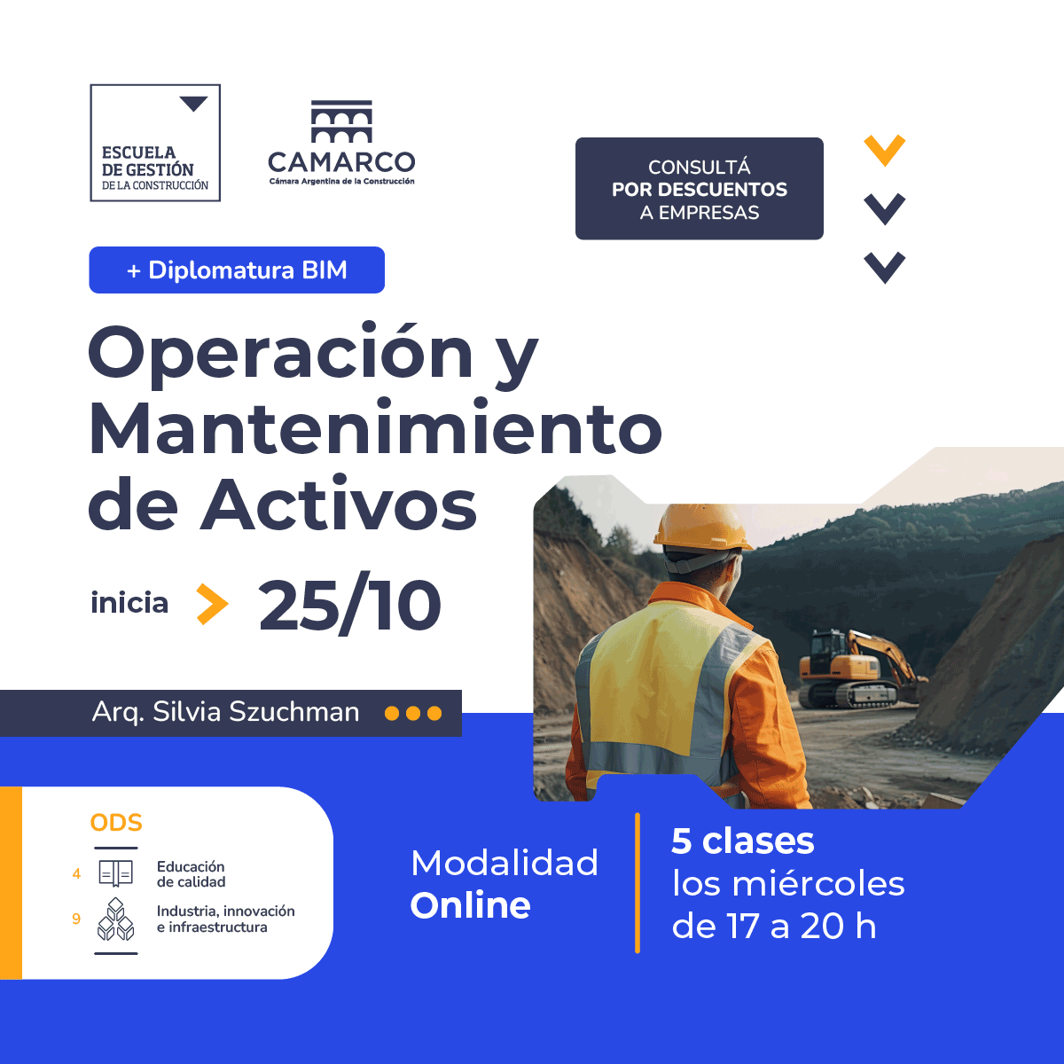 Este curso forma parte de la Diplomatura BIM en Obras que ofrece la Escuela de Gestión de la Construcción. El mismo aborda conceptos relacionados al desarrollo de modelos para la gestión de activos/recursos físicos y sus funciones (obras de renovación, mantenimiento edilicio, entre otras).