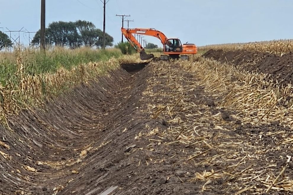 Actualmente, la intervención cuenta con un 20% de avance y tiene como objetivo mejorar el drenaje de los excedentes hídricos en una cuenca de aproximadamente 2.820 hectáreas, caracterizada por pendientes mínimas que generan frecuentes acumulamientos de agua durante períodos de lluvias intensas.