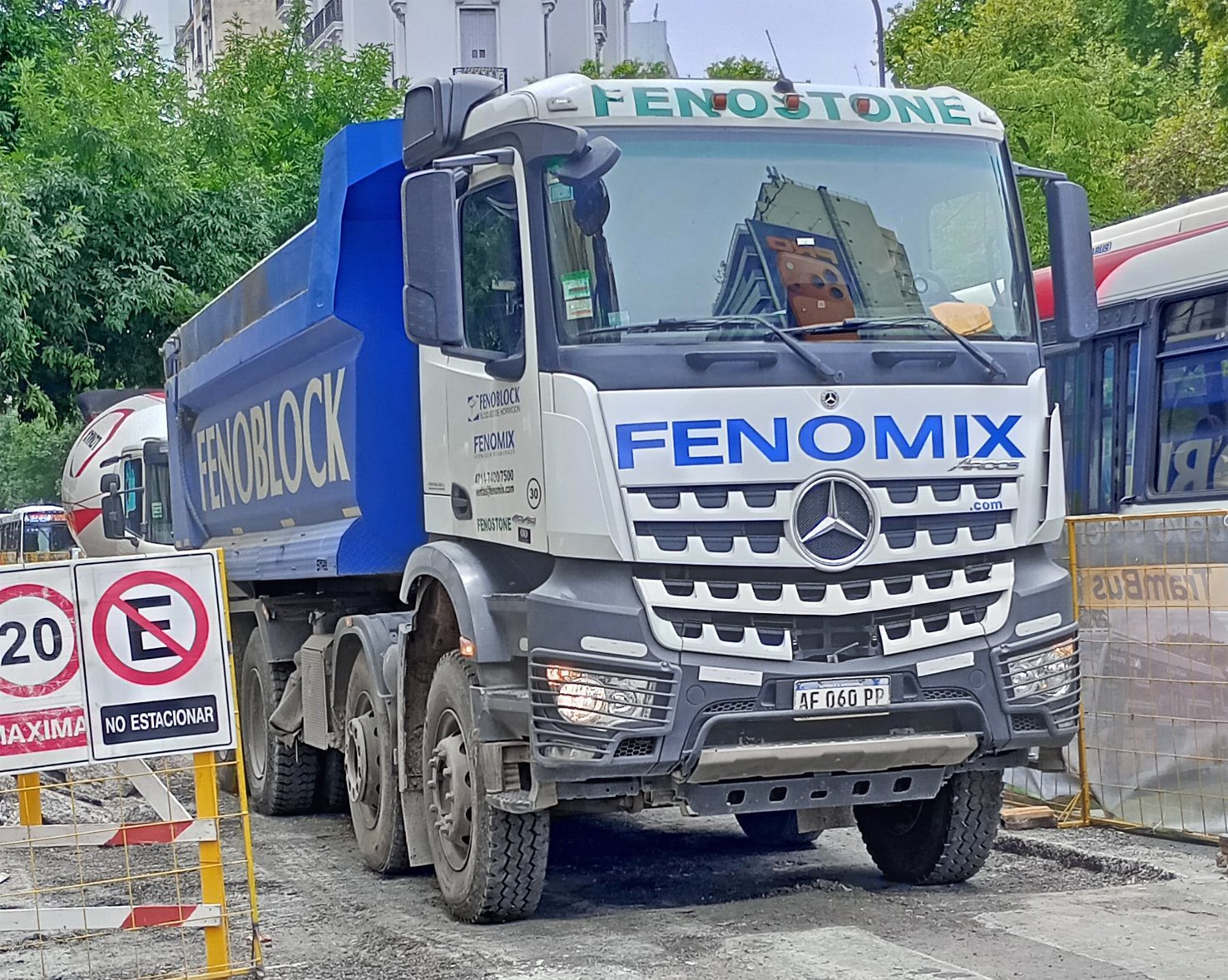 En la ciudad de Buenos Aires (CABA), durante el mes de enero y con camiones Arocs de Mercedes-Benz, la División Fenostone de la hormigonera Fonomix está participando en la construcción del Sistema TramBus; en este caso, retirando el material de la demolición de la mano derecha de la Avenida Rivadavia y la zona de parada del transporte público de colectivos (foto).